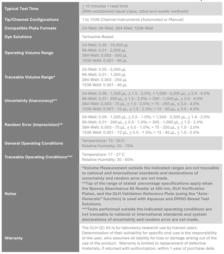 Included: Software (free 1-year license), 2 Reagent Sets (Aqueous or DMSO), Verification Microplates (50 96-Well or 40 384-Well), GLH Universal Validation Reference Plate, GLH Absorbance Mini-Reader (On-Deck or Off-Deck)